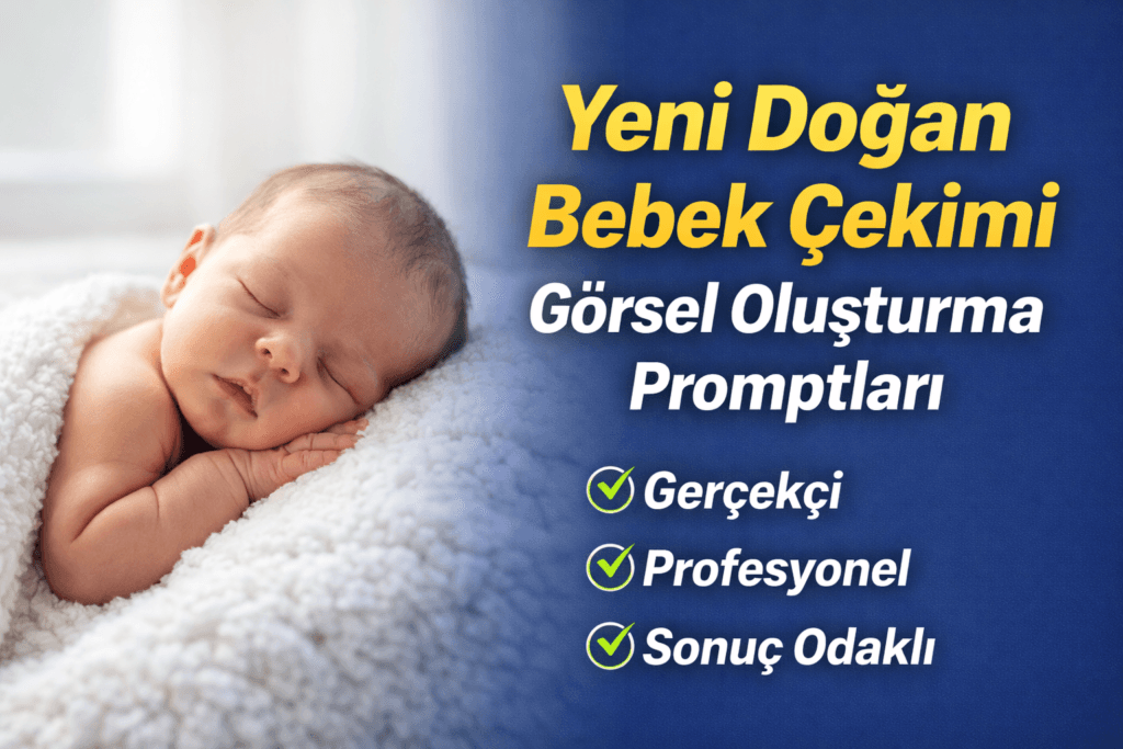 ∙ Kalite için ekleyin: “professional newborn photography, 8K resolution, soft focus, natural lighting”