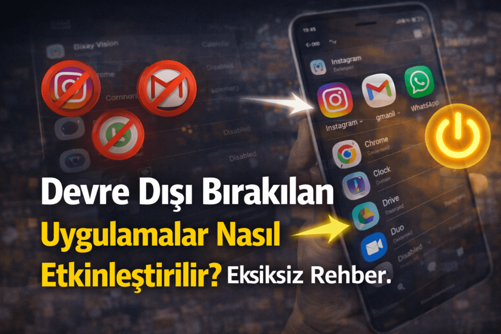 Samsung kullanıcılarıysanız, işlem oldukça basittir. Ayarlar menüsünden “Uygulamalar” bölümüne girin. Sağ üst köşedeki üç nokta menüsüne tıklayarak “Devre dışı bırakılan uygulamaları göster” seçeneğini işaretleyin. Listeden açmak istediğiniz uygulamayı bulup “Etkinleştir” düğmesine basmanız yeterlidir. Samsung One UI arayüzü bu işlemi oldukça kullanıcı dostu hale getirir.