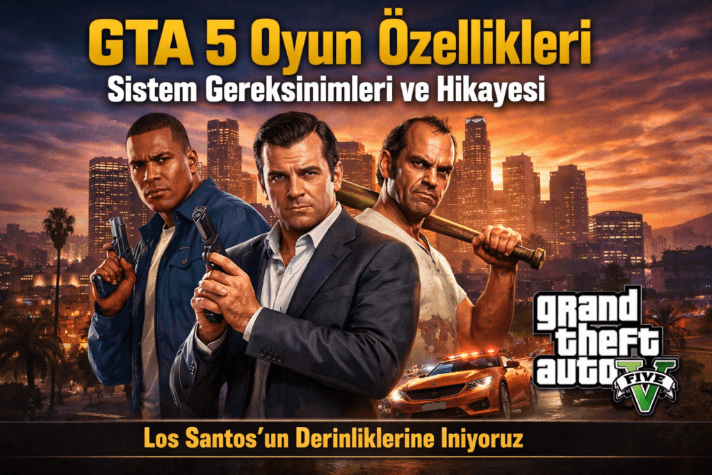 Grand Theft Auto V (GTA 5), Rockstar Games tarafından geliştirilen ve dünya genelinde milyonlarca oyuncunun oynadığı açık dünya aksiyon-macera oyunudur. Bu kapsamlı rehberde GTA 5’in sistem gereksinimleri, hikayesi, en hızlı araçları, kaç GB yer kapladığı ve daha fazlası hakkında merak ettiğiniz her şeyi bulacaksınız.